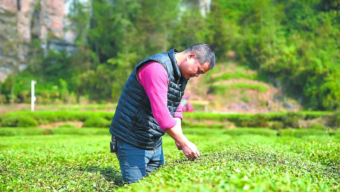 刘钰在公司茶叶基地查看茶树生长情况。