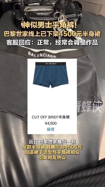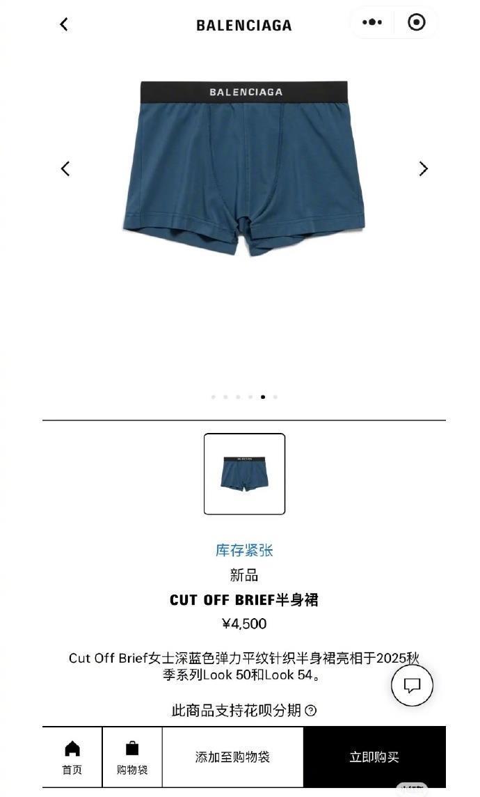 近日,巴黎世家推出一款女款半身裙引发热议,不少网友吐槽该裙子造型与平角短裤相似,直呼“看不懂时尚”。