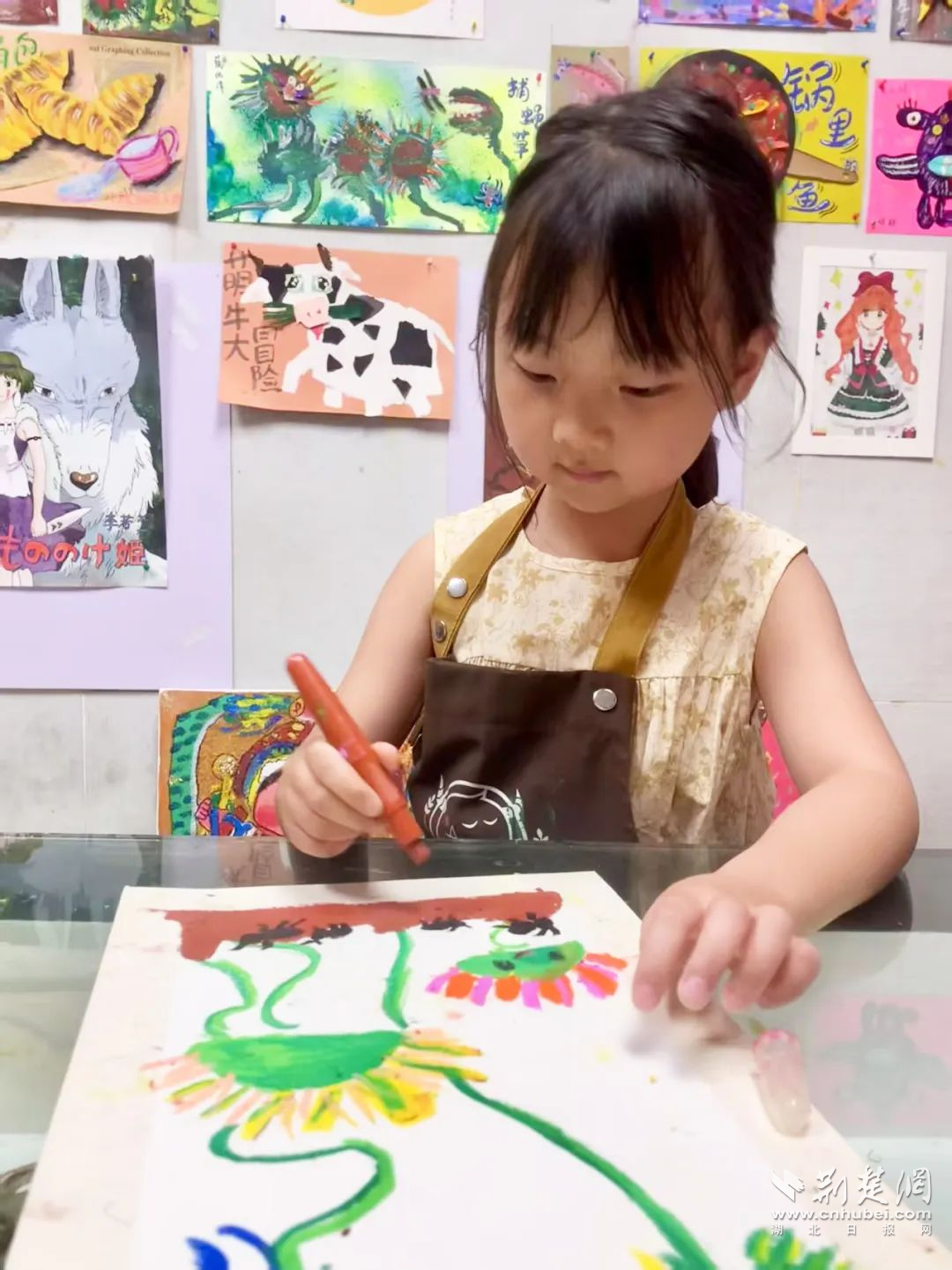 再后来,姐妹俩参加了家附近的绘画班,学习美术知识,接触到了更多的艺术表现形式。每天放学后,姐姐都会带着妹妹一起创作。她们坐在小桌子前,面前摆着五颜六色的画笔和材料。姐姐引导妹妹,俩人一起思考,使用不同的颜料、不同的工具,一起来实现想象中的作品。妹妹睁着大眼睛,专注地听着,学得有模有样,不时提出自己的想法。有一次,姐妹俩用沙子、颜料、橡皮泥、彩笔一起完成了一幅巨大的作品——《2025·冬日情》,那一时刻,姐妹俩开心地跳了起来,欢呼着拥抱在一起。