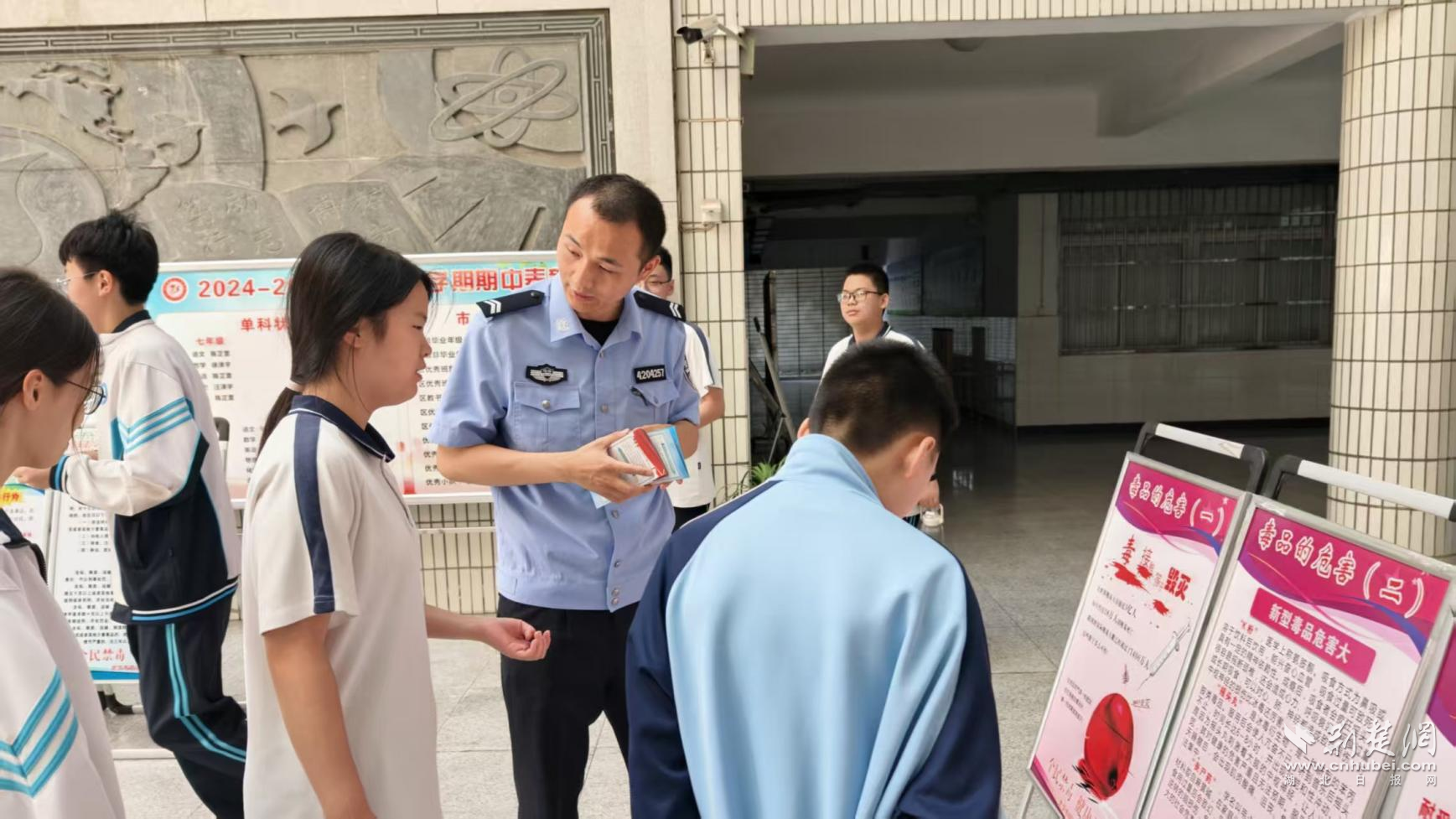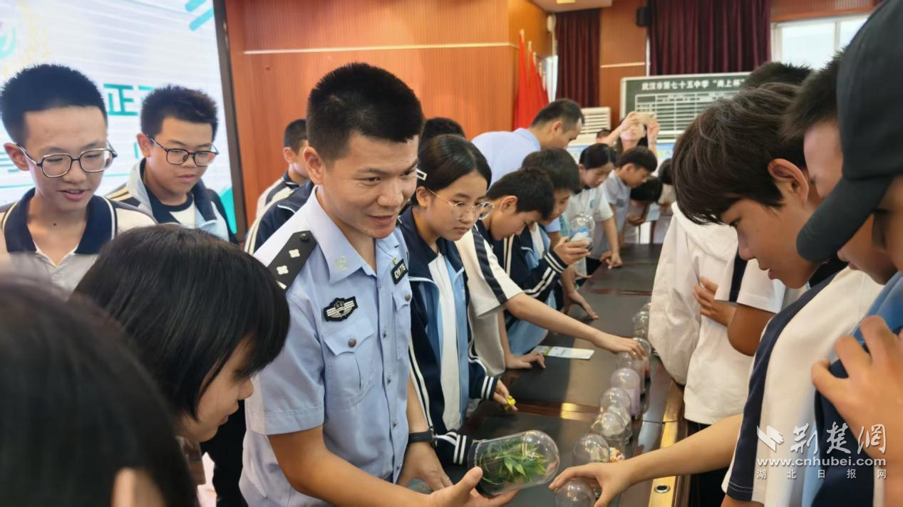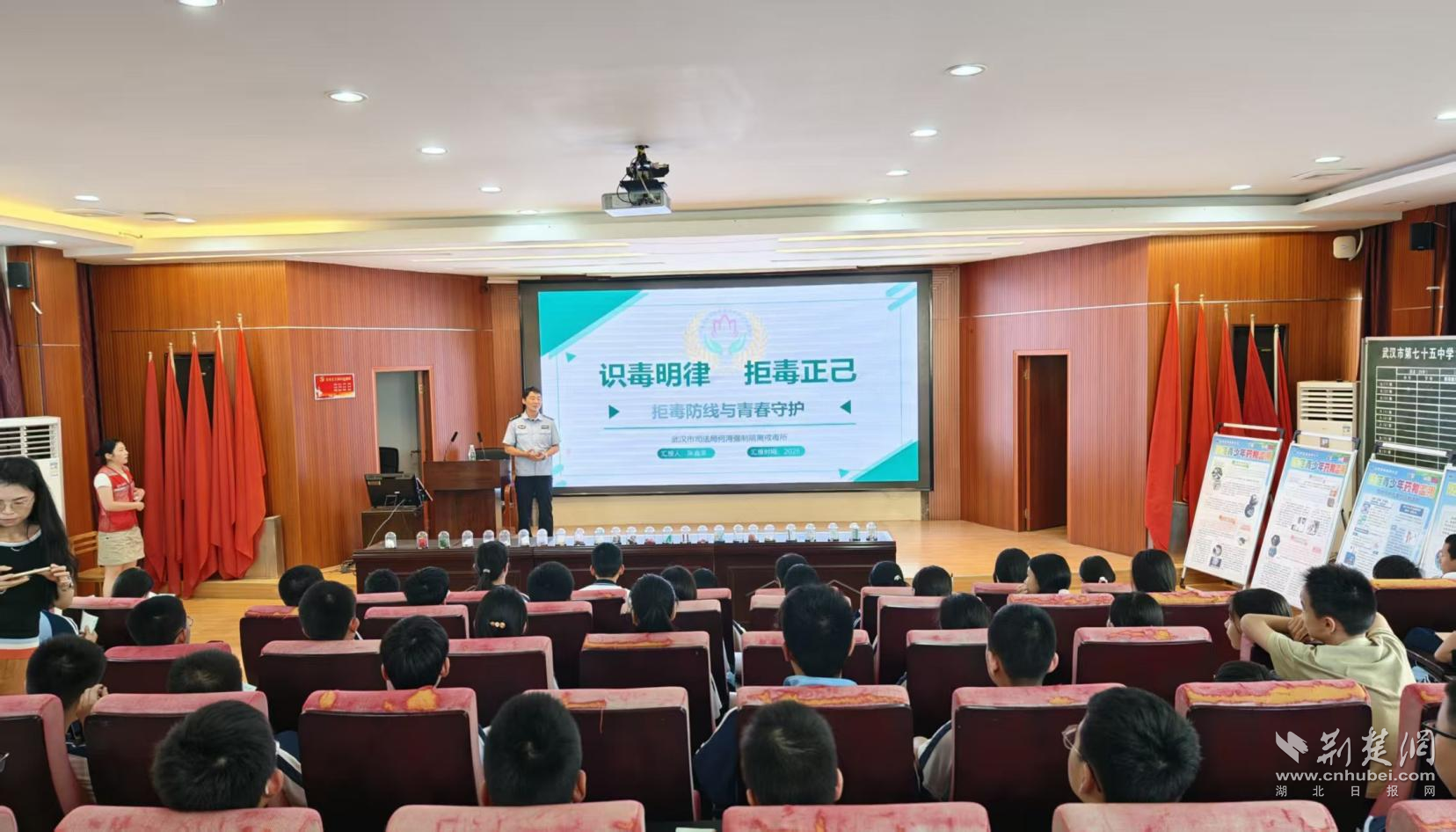 荆楚网(湖北日报网)讯(通讯员金丰)6月5日,武汉市司法局何湾强制隔离戒毒所受武汉市江汉区民意街道邀请,到武汉市第七十五中学开展以“全民共治 防范青少年药物滥用”为主题的禁毒宣传进校园活动。