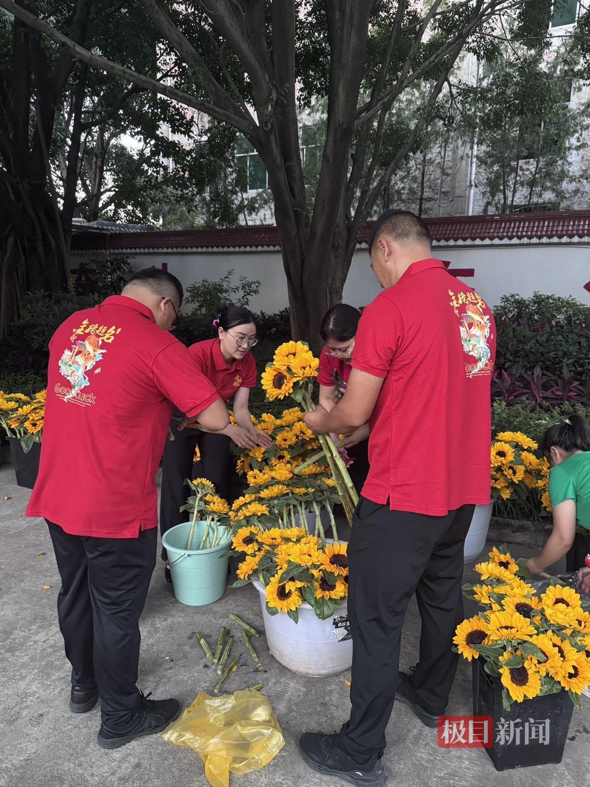 老师们为高三学生准备向日葵