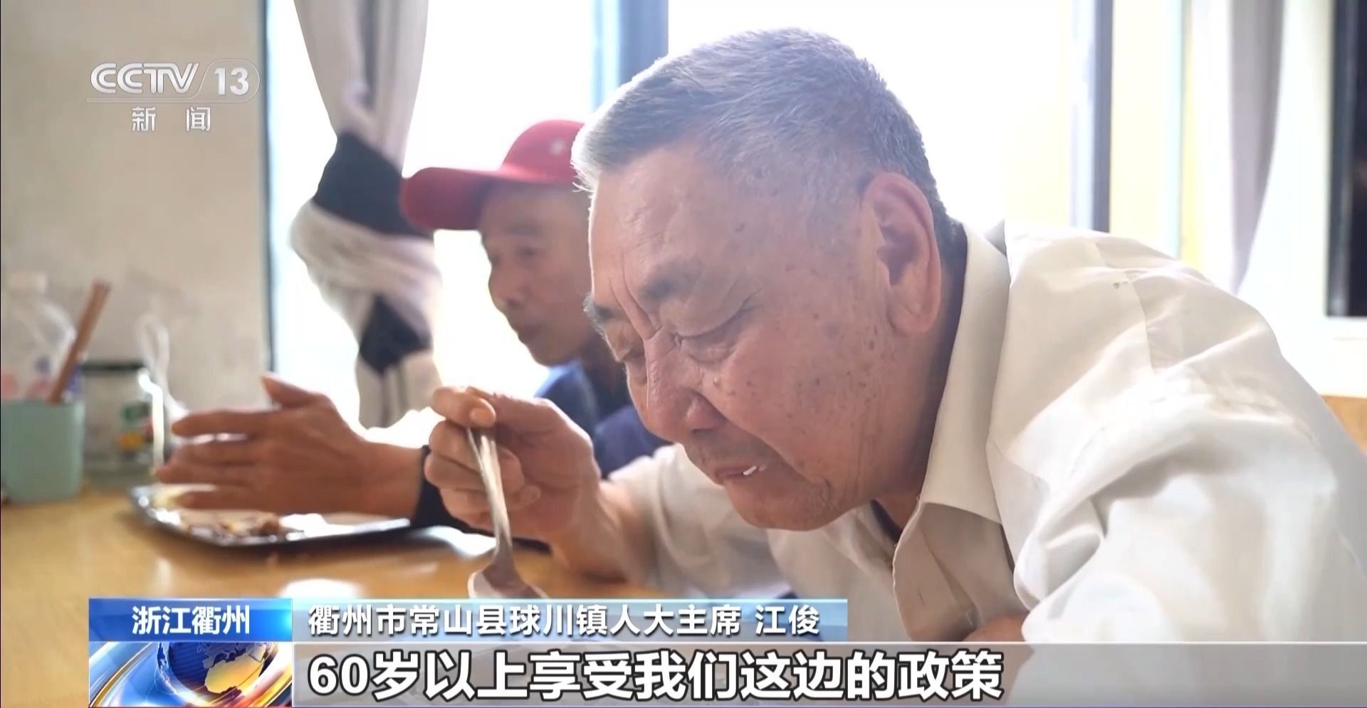 浙江省衢州市常山县球川镇人大主席 江俊:双明镇的老百姓凭身份证,60岁以上享受我们这边的政策,也可以到我们这边“幸福食堂”来吃饭。