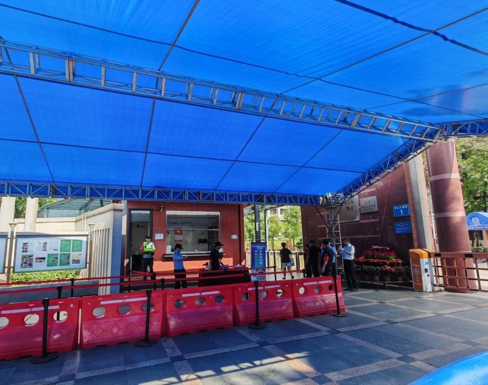 在广州,华南师范大学附属中学考点前的保障人员早早就位。考点所辖派出所派出工作人员现场维持秩序,交警疏导交通,让考生进考场的通道更加清晰有序。考点为考生准备了午餐,考生可购买饭票就餐,并在考点安排的教室午休。