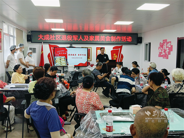 荆楚网(湖北日报网)讯(通讯员 樊静)为弘扬拥军优属的光荣传统,架起社区与退役军人及家属之间的连心桥,近日,武昌区黄鹤楼街道大成社区开展“饼香传情 暖心相伴”美食制作活动,邀请辖区退役军人及家属共赴这场充满温度的美食之约。