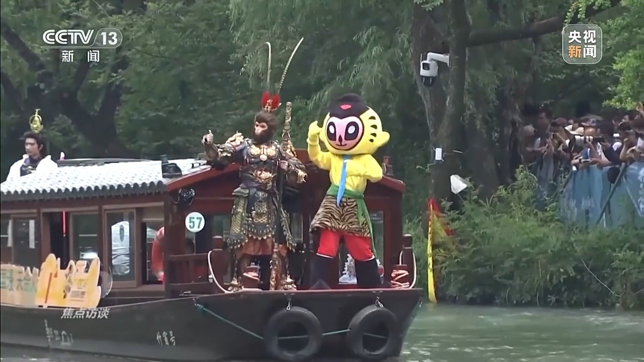 杭州西溪湿地就是“看我悟空72变”系列活动的分会场之一,当地把动漫元素融入了西溪国际龙舟文化节中,推出城水融合的动漫巡游活动。