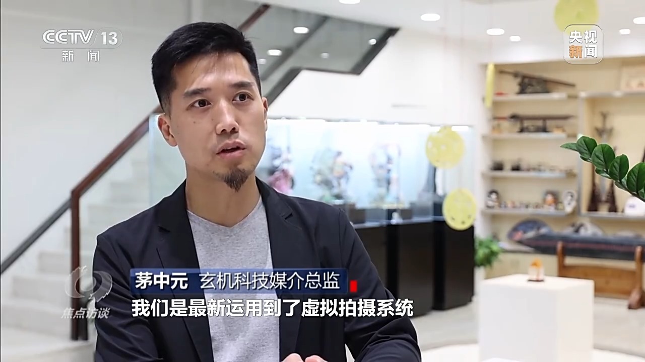 玄机科技媒介总监 茅中元:我们最新运用了虚拟拍摄系统,运用在中国的动画制作当中,我们有虚拟片场,可以通过模块化设计,快速地去搭建在虚拟世界中。我们还有一个虚拟演员系统,可以通过模块化的技术手法,快速地建立虚拟角色。
