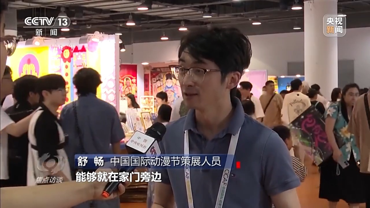 中国国际动漫节策展人员 舒畅:在动漫节现场,随时进到场馆,都能看到将近100个哪吒的角色扮演人物,100个悟空的角色扮演人物。从这些来的观众,自发去扮演这些人物,我们也可以发现,现在的国漫确实在年轻人心目当中,已经远超日漫跟美漫,成为当仁不让的顶流了。