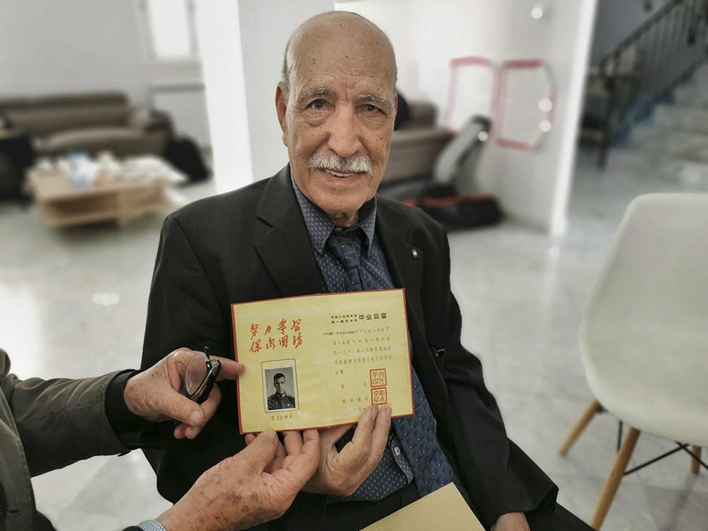 打开封面印有“八一”军徽的毕业证书,首页的黑白证件照是一名阿尔及利亚青年。他叫布达乌德·卢纳,是一名参加过阿尔及利亚独立战争并曾来华接受飞行培训的战士。
