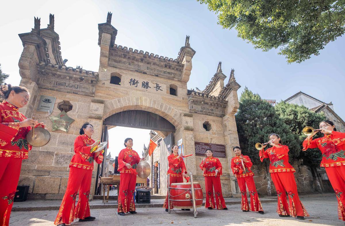 群众在红安长胜街进行锣鼓表演。(湖北日报全媒记者 薛婷 摄)