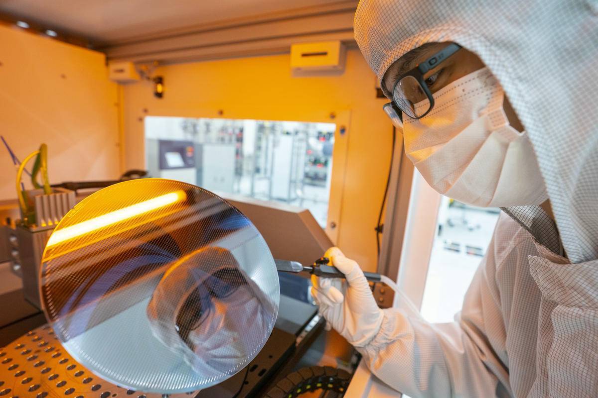 九峰山实验室,科研人员在检查芯片晶圆完整度。(湖北日报全媒记者 魏铼 摄)