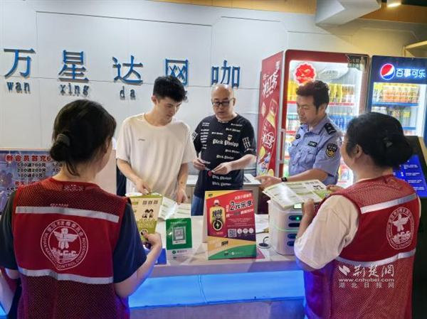 荆楚网(湖北日报网)讯(通讯员 王银铁)为深入地开展禁毒宣传教育活动,形成全民参与禁毒的浓厚氛围,6月9日,在武昌区公安分局禁毒大队的指导下,积玉桥街道禁毒社工联合汉成里社区民辅警、网格员、志愿者组成禁毒宣传小分队,走进辖区万达SOHO写字楼,针对楼宇内易涉毒行业场所开展禁毒宣传专项行动,以“精准普法+责任共建”拉开禁毒宣传月序幕。