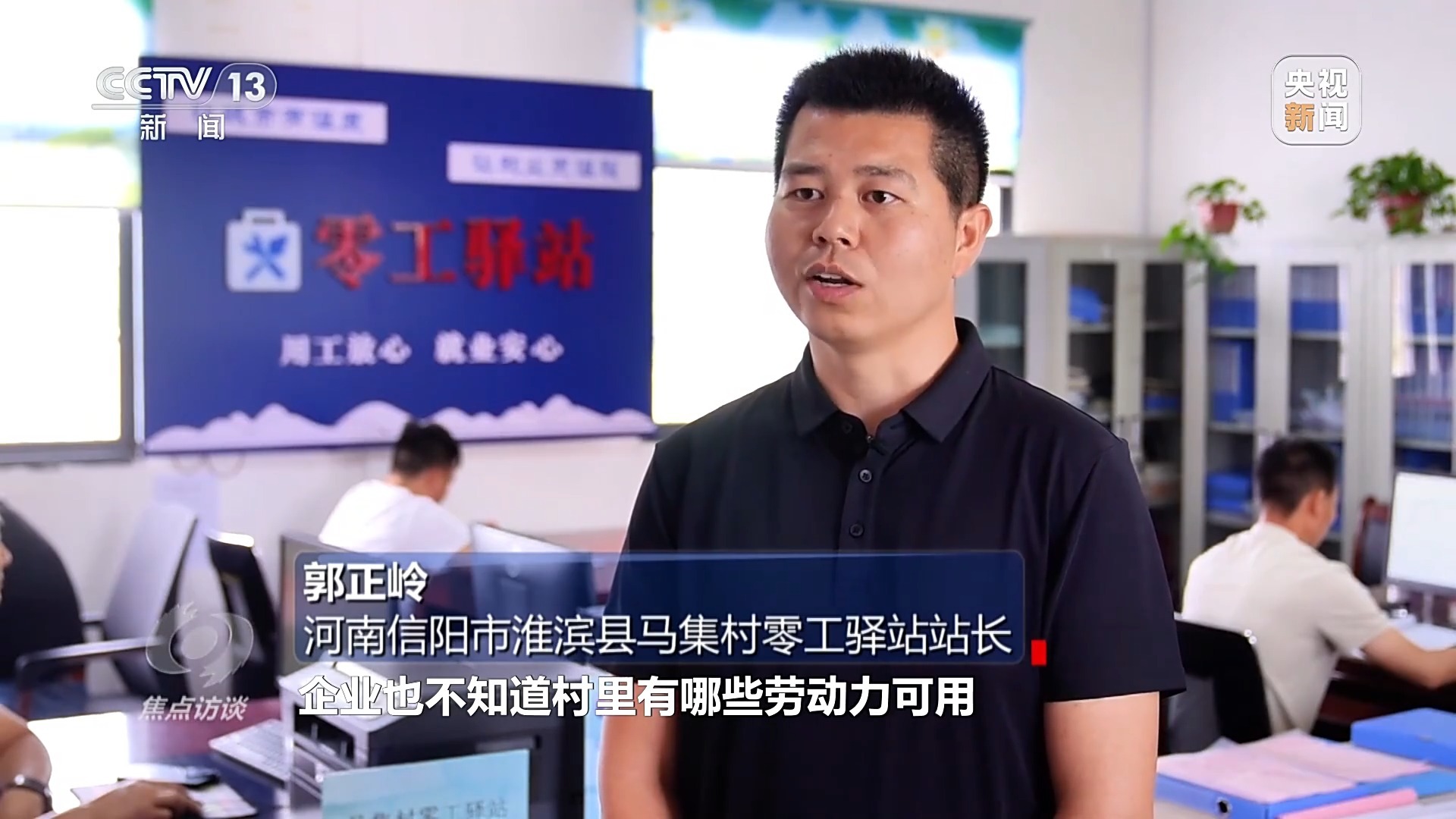 河南信阳市淮滨县人力资源和社会保障局副局长 张玲:通过县级搭台、村级跑腿的模式,既解决了农村劳动力找不到、接不上的痛点,又破解了企业招不到、用不好的难题。