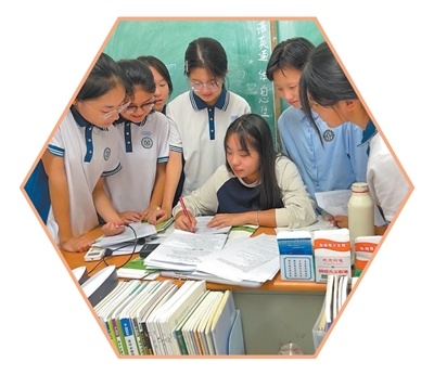 北京师范大学“优师计划”师范生张然(中)在实习时为学生讲解辅导。 北京师范大学供图 |