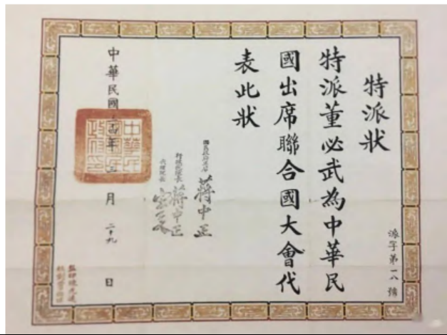 董必武出席联合国大会特派状