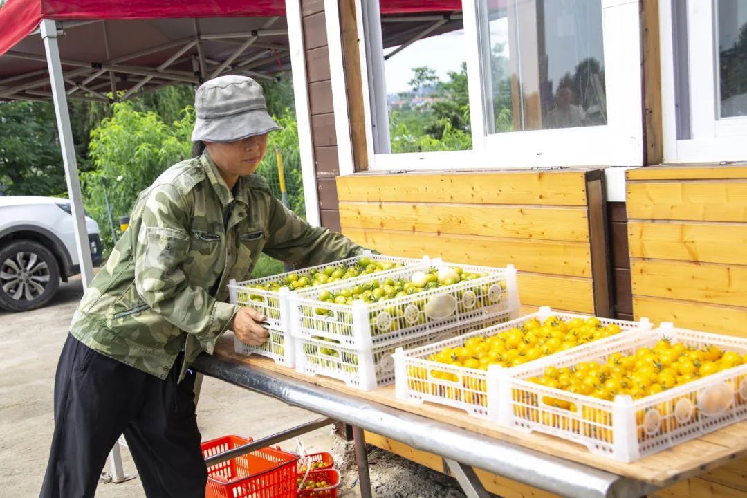 走进挂满果蔬的时令大棚,冯勇随手摘下一颗熟透的小番茄介绍道,“你看,精心养护、自然成熟的番茄咬一口爆汁,口感绝对错不了!”过硬的水果品质也是最让冯勇和王征骄傲的地方,加上为人真诚热情,采摘园吸引了众多回头客。每到采摘高峰期,单日入园人数近200人。