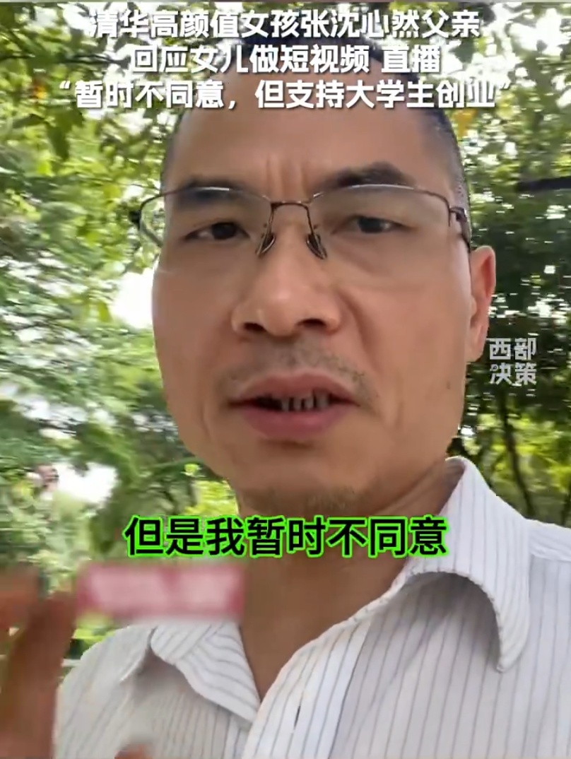 对此,张沈心然父亲发视频,回应女儿做短视频直播。他表示:“女儿发的短视频基本都能上热门,也能接到广告,直播也是几万人在线,但暂时不同意女儿做这件事,因为觉得太漂亮的女生不适合做直播。自己很支持大学生创业,但不能盲目瞎搞,要有策划。”