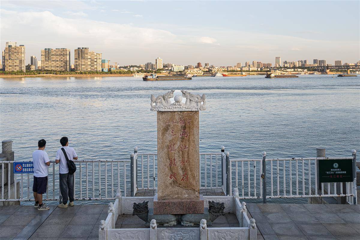 地处长江、汉江交汇处的龙王庙,一直是防汛险段。1998年,武汉遭遇20世纪长江全流域性第二次特大洪水。喻传喜、马晓君、徐兵等16名驻守堤坝的共产党员将“誓与大堤共存亡”的“生死牌”竖在龙王庙,誓死保卫大武汉。如今,经过多年蜕变,龙王庙闸口所在的江滩已从防洪岸滩变身百里画廊,并逐步以更加开放、国际化的百里沿江生态文化长廊形象呈现。(湖北日报全媒记者 任勇 摄)