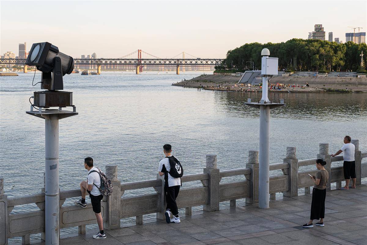 6月15日傍晚,在武汉市龙王庙闸口,市民在江边散步休闲。(湖北日报全媒记者 任勇 摄)