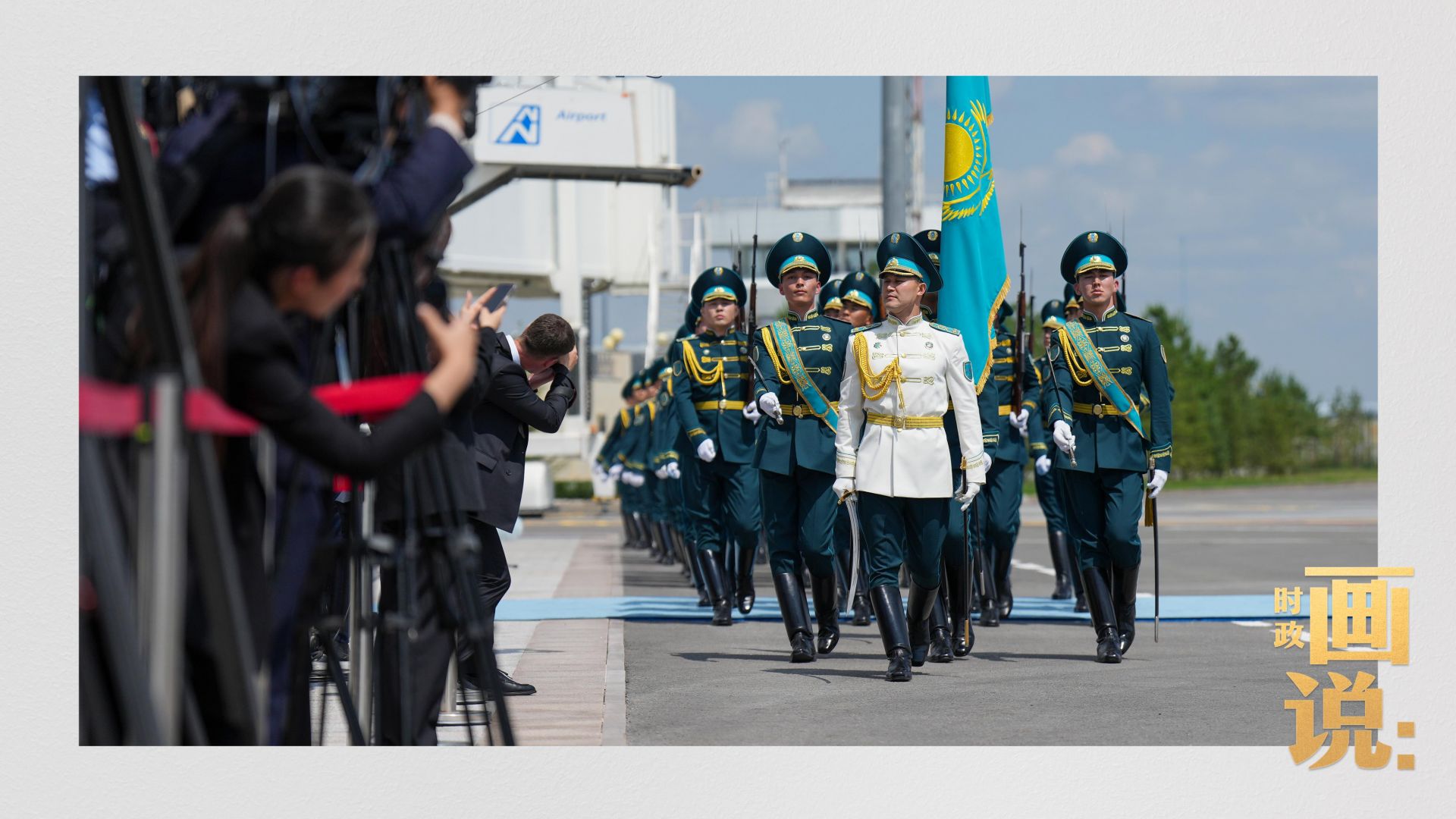 当地时间6月16日中午,国家主席习近平乘专机抵达阿斯塔纳,出席第二届中国—中亚峰会。
