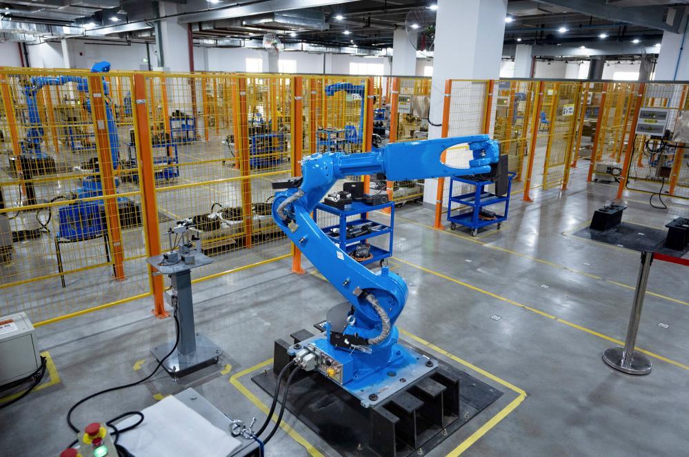 2024年11月13日,在成都卡诺普机器人技术股份有限公司,工业机器人在出厂前进行全自动测试。新华社记者 江宏景 摄