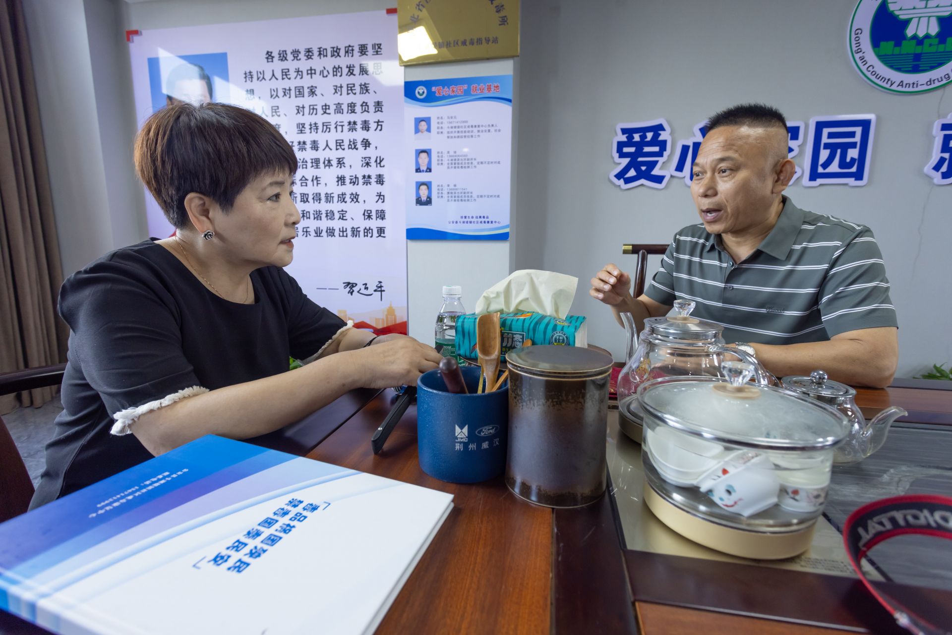 如果说“爱心家园”提供了安身之所,那么“同伴教育”则点燃了心灵深处的希望火种。在“爱心家园”就业基地,“同伴教育”座谈会气氛热烈。叶雄,这位成功戒毒并投身公益二十余载的知名人士,正与戒毒康复人员促膝长谈。