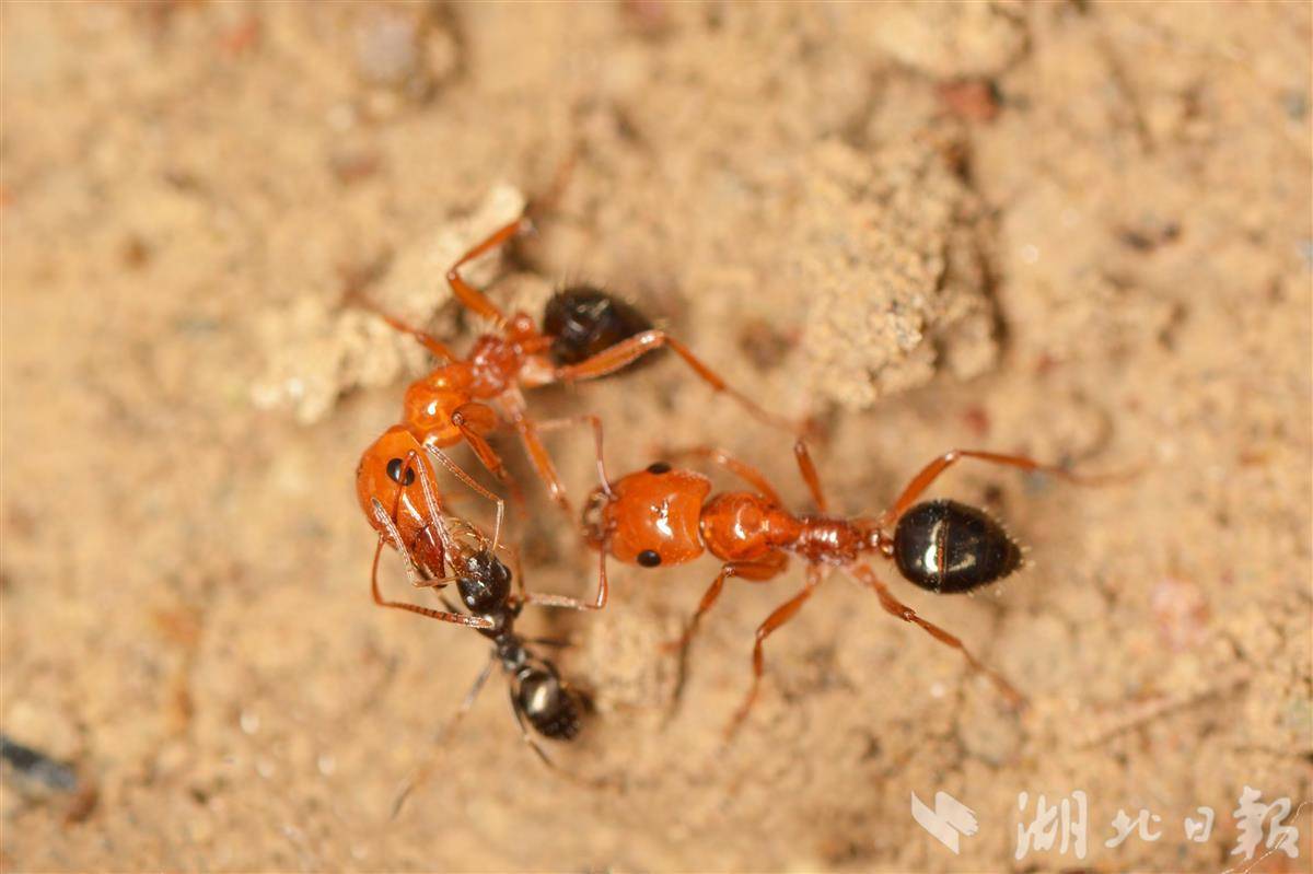 役奴蚁方结俄蚁工蚁(大)和奴隶蚁原蚁小工蚁(小)(冉浩 摄)