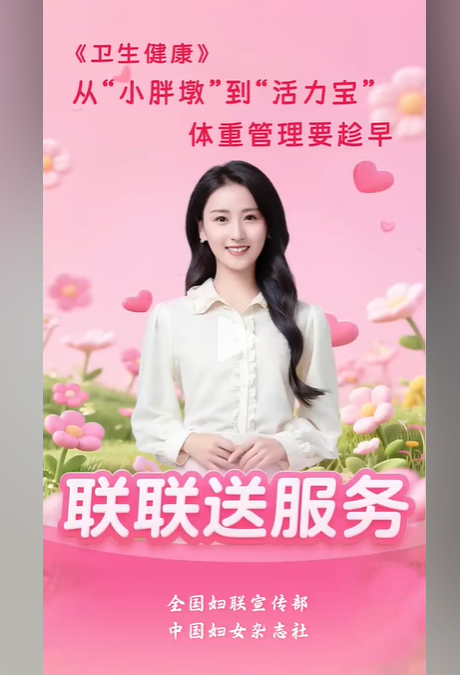 #联联送服务 #全国妇联100集生活小百科AI短视频系列 丨第二集《从“小胖墩”到“活力宝” 体重管理要趁早》 为深入贯彻落实习近平总书记重要论述重要讲话重要指示批示精神,全国妇联聚焦广大妇女和家庭关注的家教育儿、卫生健康、移风易俗、维权服务等方面,精心制作AI短视频《联联送服务》,用智能技术赋能生活智慧,每周一、三、五、日依次推出,为基层姐妹打造“指尖上的课堂”,让我们一起关注吧!