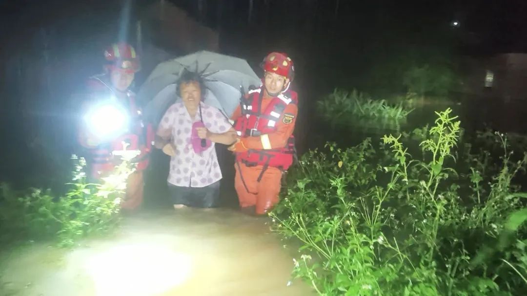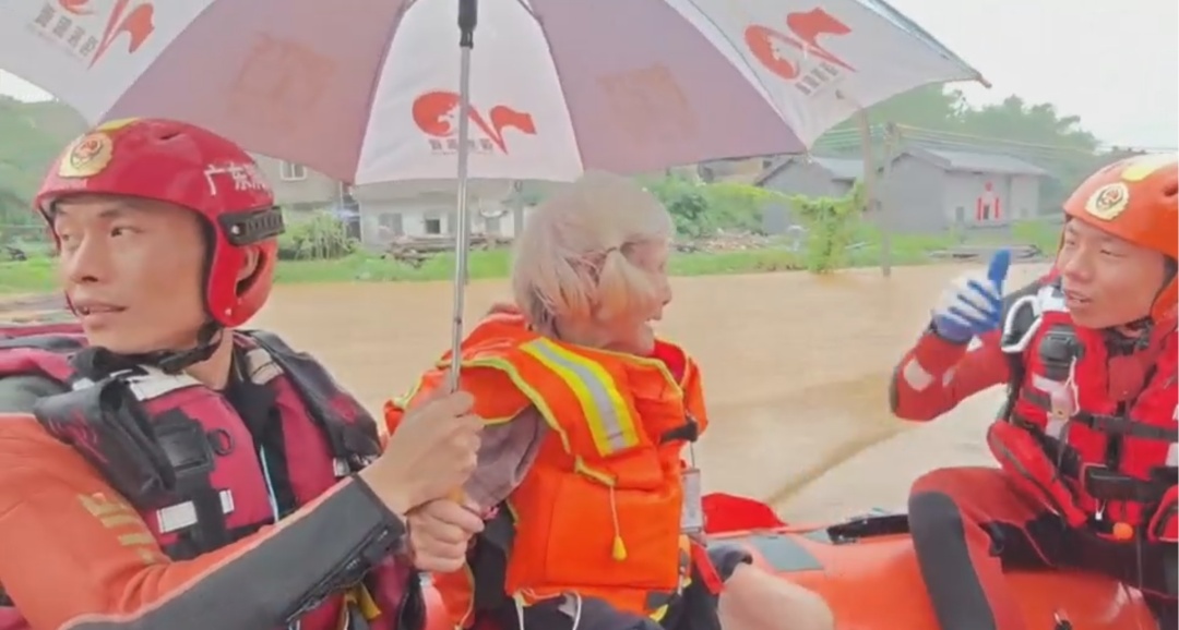 在受灾最严重的居民区,多位行动不便的老人和儿童被迫退至二楼阳台等待救援。消防员为80多岁的阿婆仔细系好救生衣后,与队友架设救援梯。老人颤抖着双手,在消防员的贴身保护下,一步步安全转移到冲锋舟上。
