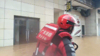 6月18日凌晨,怀集县城区积水最深处已淹没楼房一层。消防员深入积水区,争分夺秒搜救被困群众。
