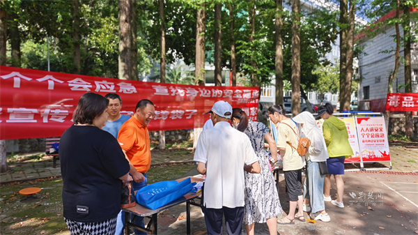 活动现场,印有“人人会应急”的横幅醒目悬挂,工作人员向居民发放了200余份图文并茂的宣传折页,详细讲解家庭用电规范、燃气软管更换周期等实用知识。街道定制的200余件印有安全标语的环保袋、围裙等实用宣传品,成为居民日常安全提醒的“移动课堂”。“听了讲解才知道日常用电有这么多注意事项,这些资料很实用。”居民李阿姨说。