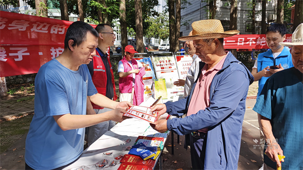 荆楚网(湖北日报网)讯(记者 李燕 通讯员 陈薇)6月16日,武昌区石洞街道在辖区足球场开展“人人讲安全,个个会应急,查找身边安全隐患”主题宣传活动,为居民送上涵盖用电、燃气、火灾逃生等知识的“安全大礼包”。