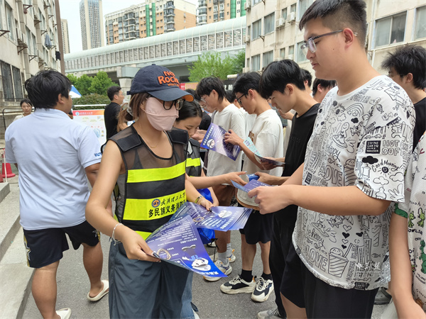 现场,武汉理工大学余家头校区多民族义务消防队和杨园街道“美美与共”多民族志愿服务队也积极参与其中,给师生发放反诈宣传资料,呼吁大家增强防诈意识。