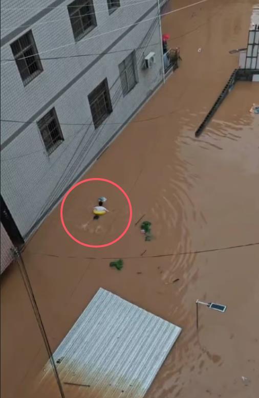当地居民发布的视频显示,当地部分地方渍水严重。因为19日正是中考第二天,一早就有一名白衣考生带着游泳圈,游过被淹的地方。