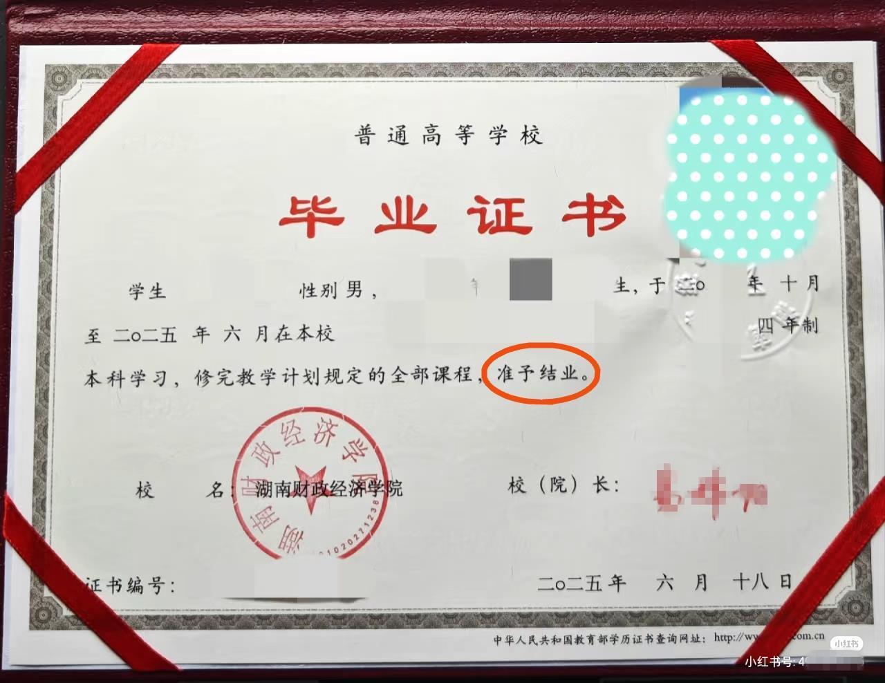 6月18日,湖南财政经济学院多名学生晒图片反映,该校今年的毕业证出现印刷错误,“准予毕业”印成了“准予结业”。学生们互相调侃:“恭喜大家顺利结业。”也有人表示不解:“这种错误怎么犯的,每年的毕业证不是一个模板吗?今年重新排版设计了?”