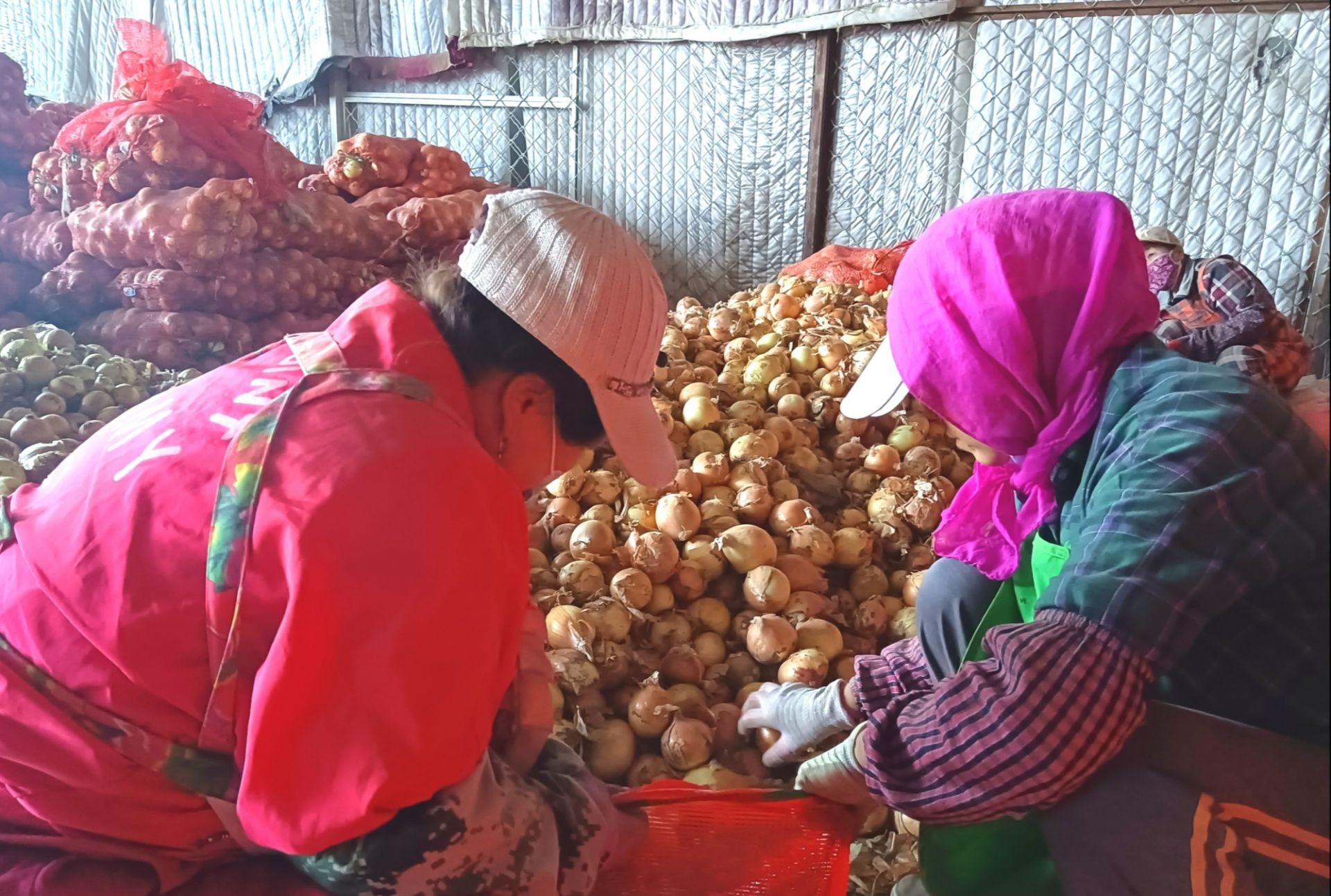 工人在挑选出口圆葱(央广网记者陈显春 摄)