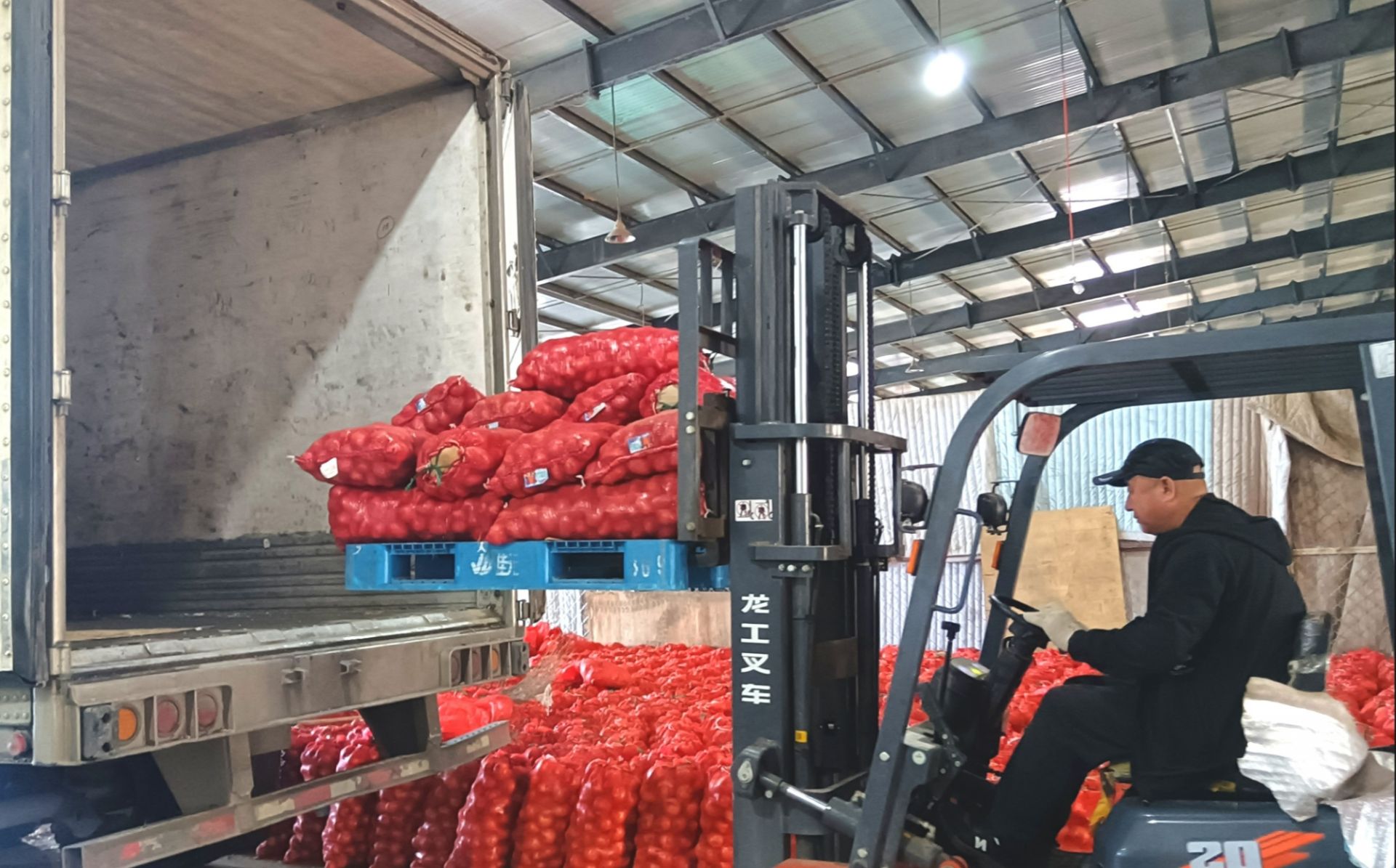 佳木斯市佳天国际农副产品物流交易中心,是黑龙江省内唯一的国家级农产品公益性示范市场,是黑龙江省东部地区最大的农产品批发交易中心,市场年总交易量66万吨,交易额53亿元。在佳天国际农副产品物流交易中心库房,记者看到,工人们把挑选好的圆葱装袋封口,叉车工正往俄罗斯运输车上装载货物。