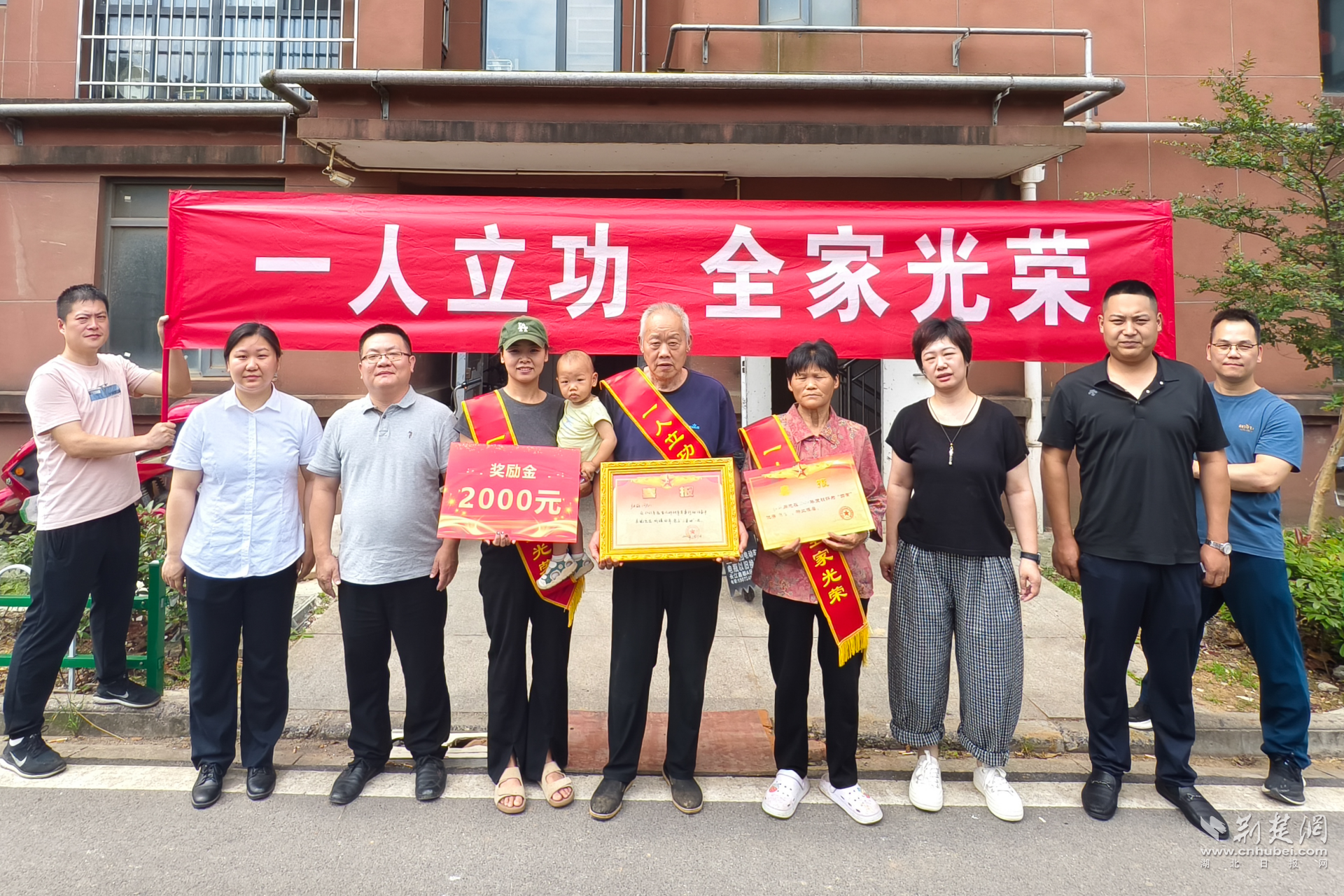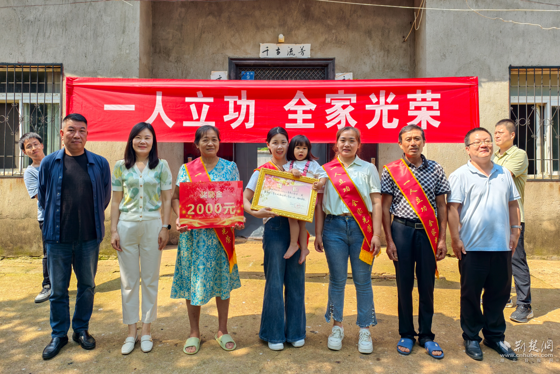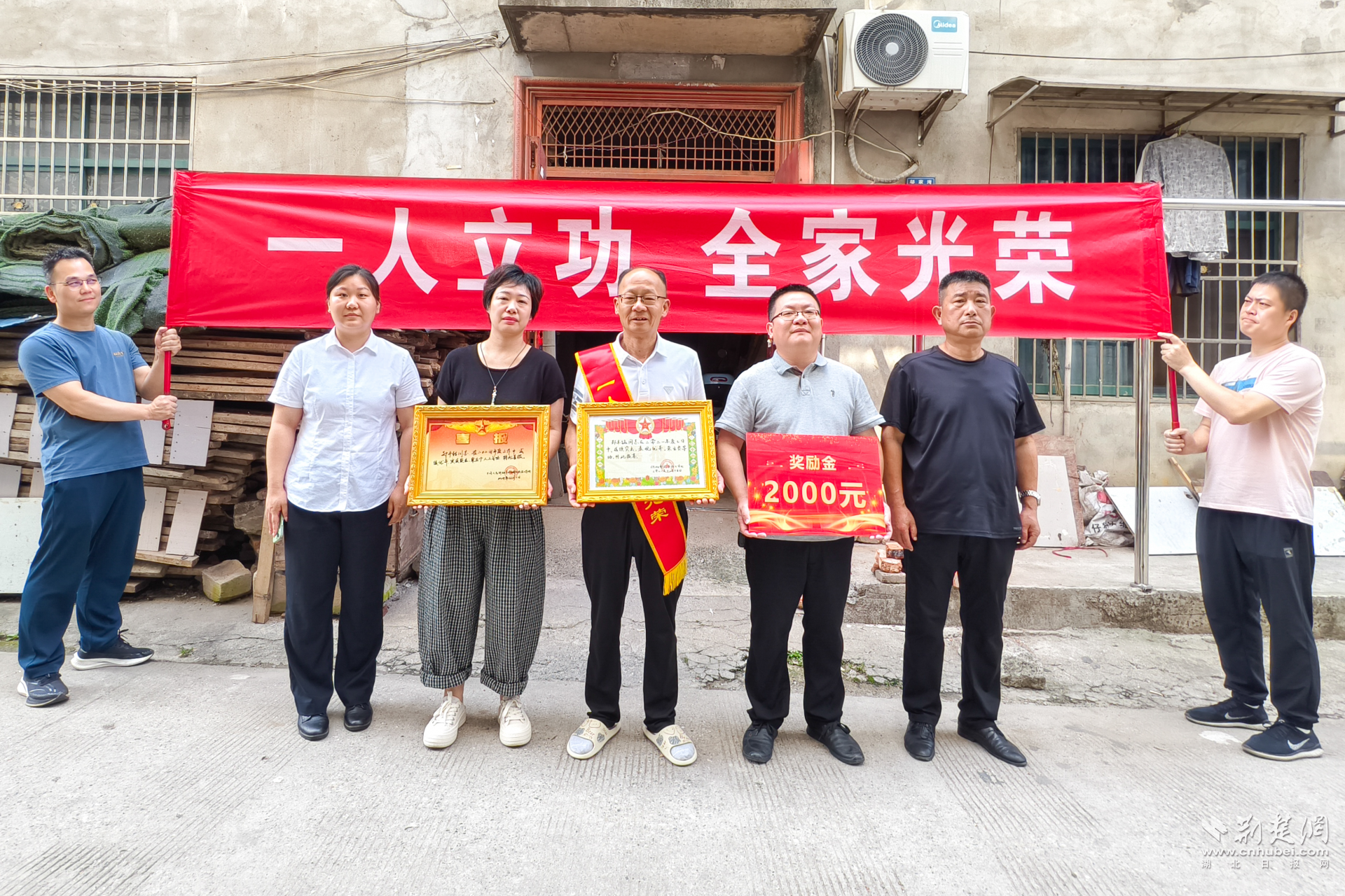 “你们能够等一会儿嘛!我儿媳妇得知今天你们来家里送儿子张舢的立功喜报,特意去幼儿园接孙女回来一起分享儿子的荣誉时刻。”在江夏区山坡乡前途村新屋张湾现役军人张舢家中,张舢父亲张良海激动地为前来送喜报的工作人员和邻居们分发喜糖,让大家分享儿子的立功荣誉。
