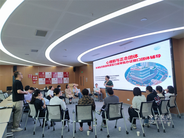 荆楚网(湖北日报网)讯(记者 李燕 通讯员 孙琳 贾子剑)6月19日下午,武汉市武东医院联合东湖风景区第一社区卫生服务中心,面向东湖生态旅游风景区公安分局民警及行政审批办证窗口工作人员,开展“心灵舞台・正念调心”心理剧与正念团体体验活动,帮助一线人员缓解工作压力,提升情绪管理能力。