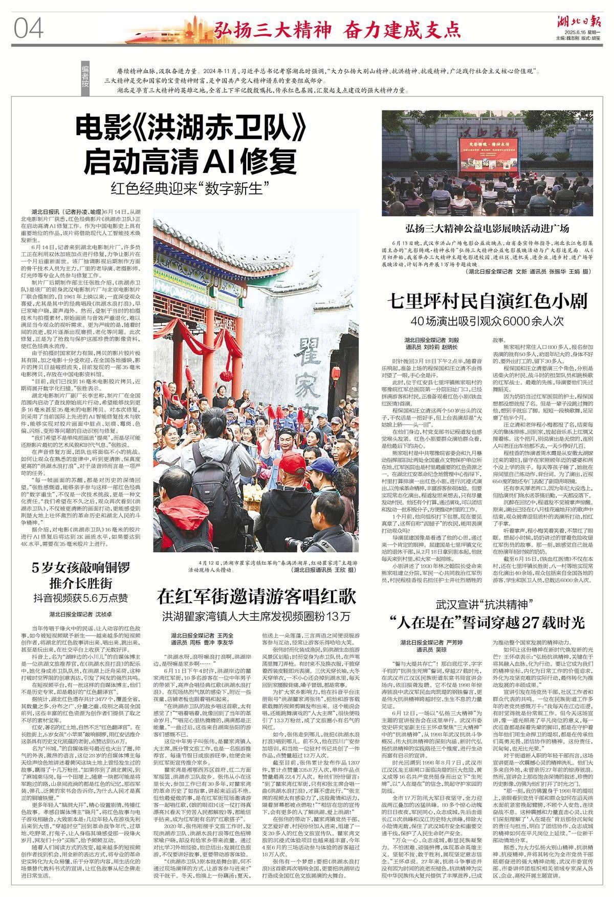 “每一帧画面的苏醒,都是对历史的深情回望。”张胜感慨道,能够亲手参与这样一部红色经典的“数字重生”,不仅是一次技术挑战,更是一种文化责任。“我们希望在不久之后,观众再次看到《洪湖赤卫队》,不仅被更清晰的画面打动,更能感受到荆楚大地上壮怀激烈的革命历史和湖北人民的斗争精神。”