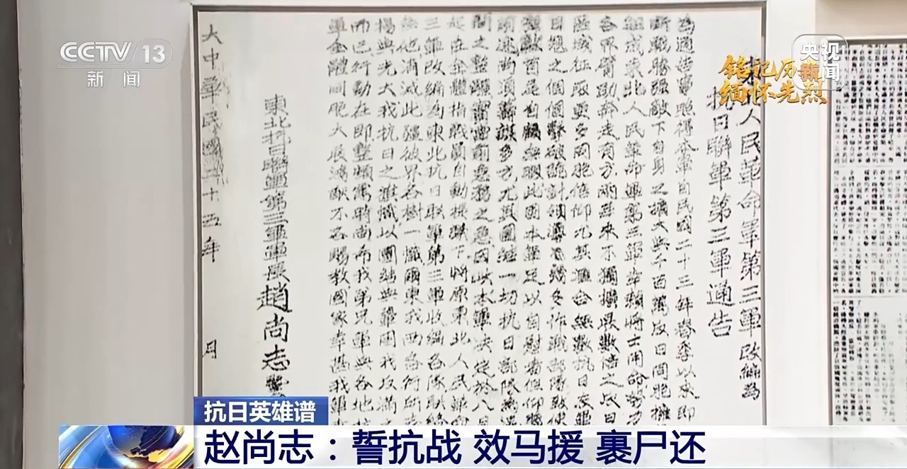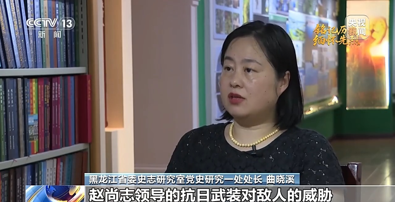 黑龙江省委史志研究室党史研究一处处长 曲晓溪:日本侵略者悬赏捉拿赵尚志,甚至喊出了“一钱骨头一钱金,一两肉得一两银”,可以充分看出赵尚志领导的抗日武装对敌人的威胁,也可以看到敌人对赵尚志的畏惧。