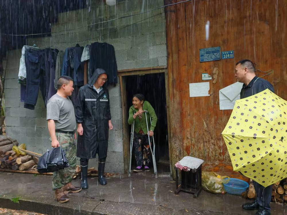 6月19日,当地干部正在入户转移鹤峰县太平镇芦坪村汪家河受灾群众。新华社发