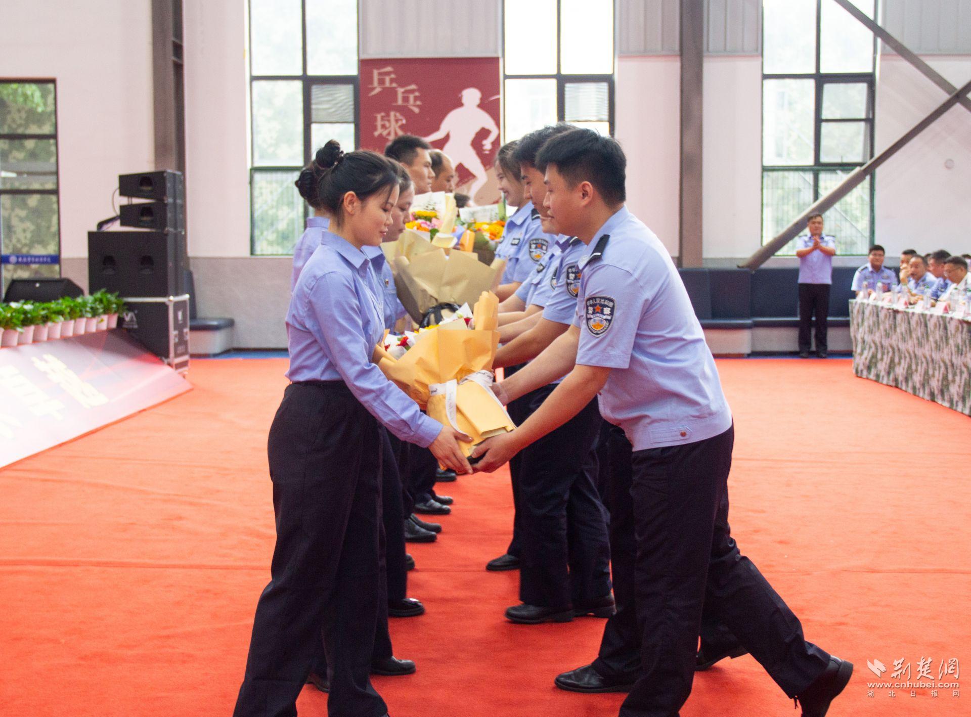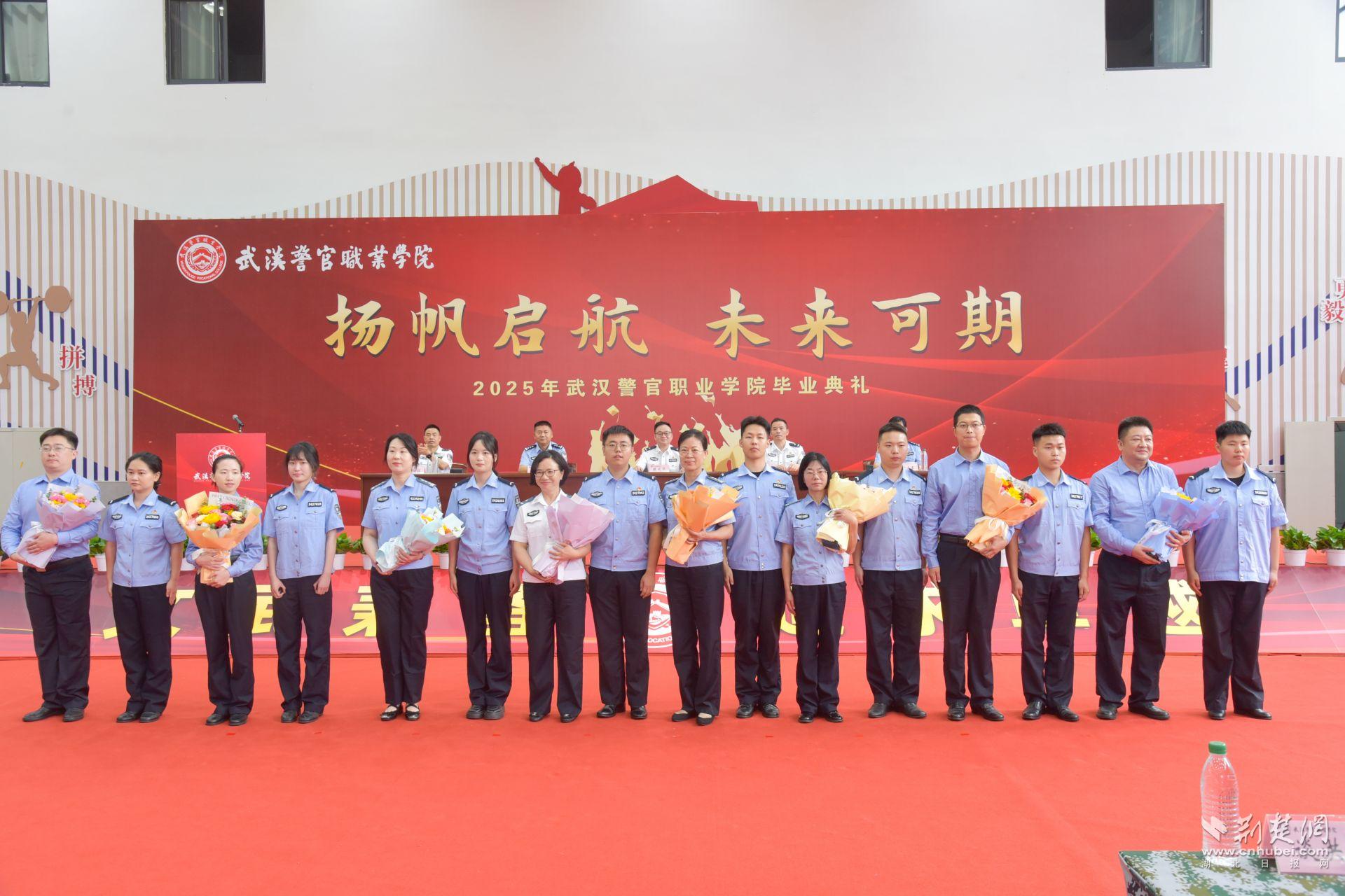 武汉警官职业学院党委委员、副校长李祖义宣读了《武汉警官职业学院关于表扬2025届优秀毕业生的通知》;校领导为毕业生代表颁发毕业证书,为优秀毕业生代表颁发荣誉证书;优秀毕业生代表分别为教师代表、政治辅导员代表赠送鲜花。