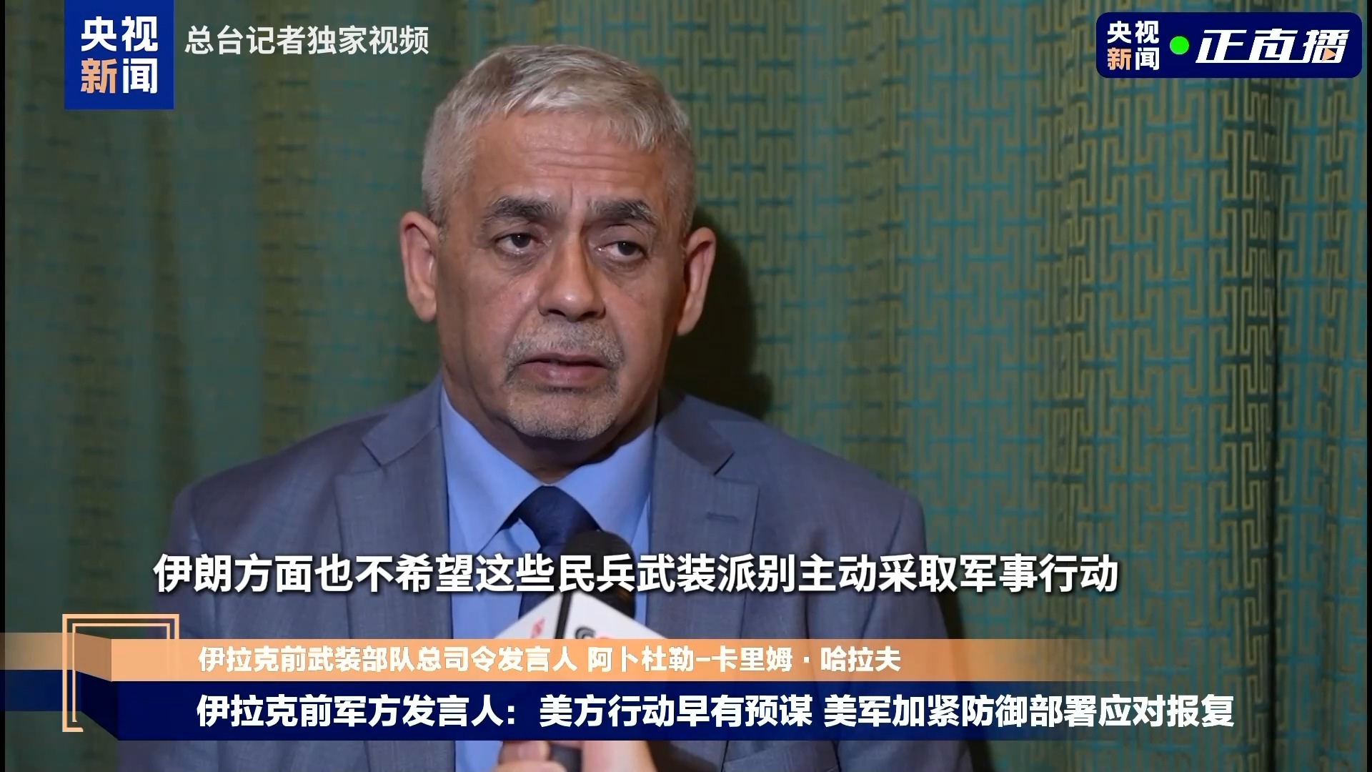 在美国针对伊朗境内三处核设施发动袭击后,该地区紧张局势进一步升温。面对美方袭击伊朗可能引发的全面对抗,伊朗境外的什叶派盟友,特别是伊拉克境内的民兵组织的立场备受关注。总台记者就此专访了伊拉克前军方发言人,就当前局势演变进行解读。