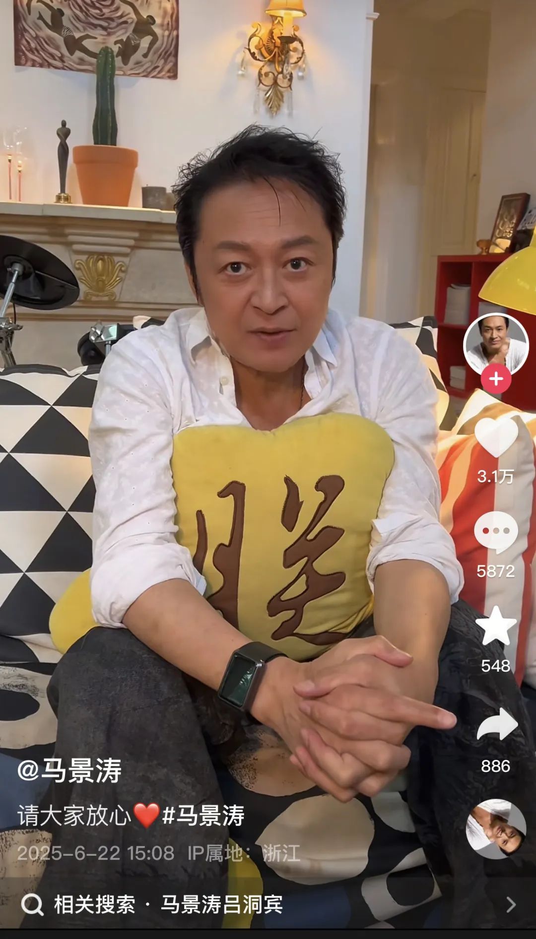 6月22日,马景涛通过社交媒体跟网友报平安,回应疑因闷热中暑昏厥传闻。