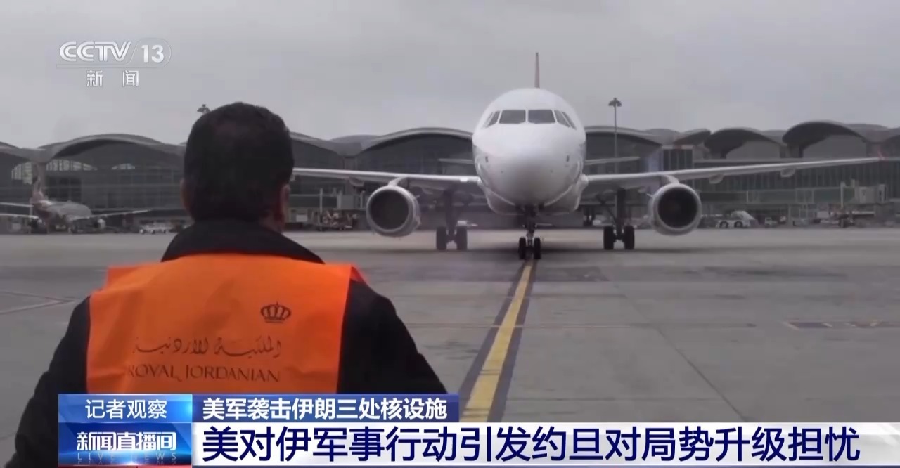 总台记者 朱云翔:当地时间6月22日上午,因受导弹飞越约旦领空的影响,约旦民航监管部门两度紧急关闭本国领空,航班运行受到短暂影响。尽管目前航班已恢复正常,但这一临时措施凸显出地区局势陡然升级所带来的现实安全压力。
