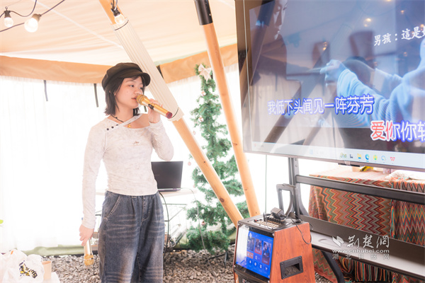 活动现场,天幕帐篷点缀着缤纷彩旗与暖黄串灯,与葱郁山林相映成趣,营造出浪漫温馨的氛围。活动伊始,爱联盟工作室志愿者杨林老师向大家简要介绍了活动背景与流程。来自武汉音乐学院的青年志愿者倾情演唱《后来》《蝴蝶》等歌曲,动人的歌声瞬间点燃现场气氛。