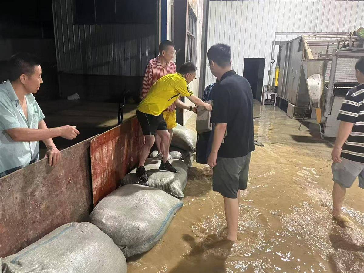 暴雨中,百余名干群并肩作战。沙袋在无数双沾满泥浆的手中传递、堆砌,汗水和雨水交织,浸透了每个人的衣衫。晚上7点,一道长150米、高80厘米的防洪墙屹立在厂区外,筑起了一道坚实的防线。