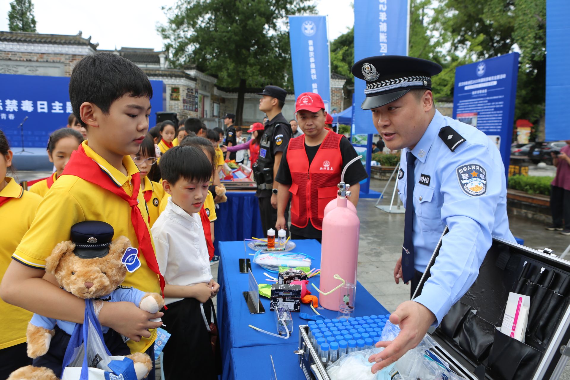 禁毒宣传展示区民警给孩子科普知识。通讯员供图