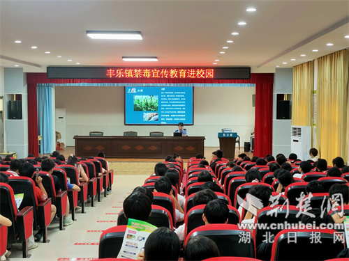 当天上午,钟祥市丰乐镇社区戒毒康复中心工作人员、派出所民警走进丰乐中学,开展禁毒知识讲座、参观仿真毒品、发放宣传手册等形式多样、内容丰富的禁毒宣传教育活动,提升青少年识毒、防毒、拒毒意识。