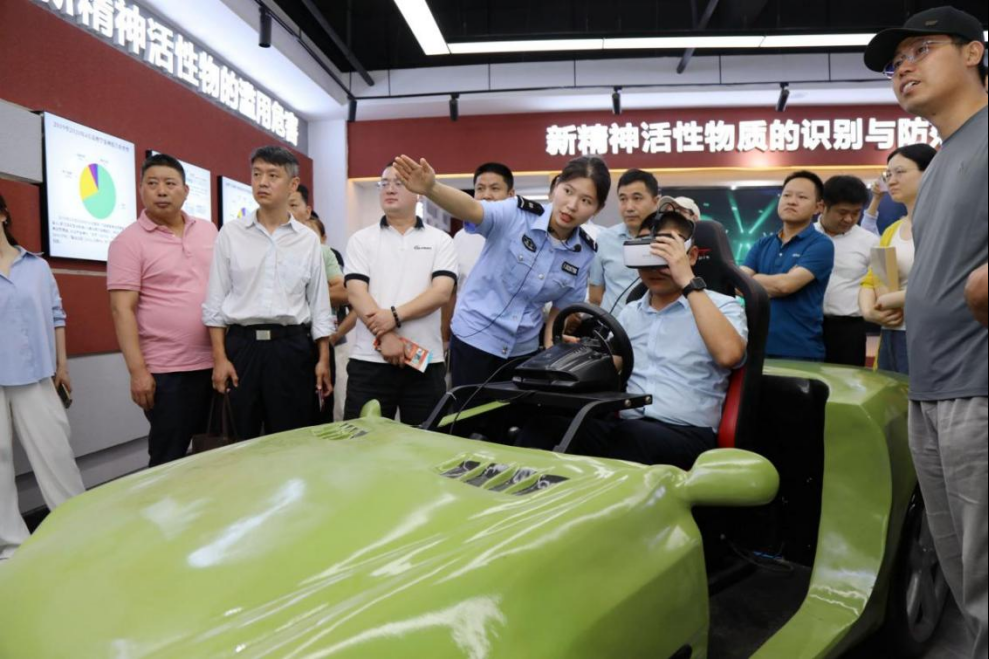 在武汉光谷新精神活性物质禁毒教育基地,员工们体验模拟毒驾体验系统。“眼前天旋地转、方向盘根本不听使唤!”体验者王先生心有余悸。站在“吸毒后人脸变化系统”前,看着屏幕上模拟健康红润的脸庞如何在毒品摧残下变得枯槁凹陷,视觉冲击力十足。基地参观尾声,全体警员和企业代表一同举臂,“珍爱生命,远离毒品!”的禁毒誓言铿锵有力,不断回响。